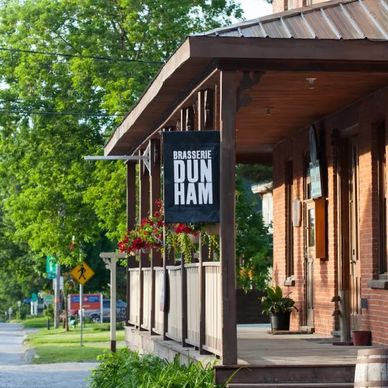 Le Pub de la Brasserie Dunham est l’endroit idéal pour déguster nos bières à même la source, de casser la croûte et de profiter du soleil sur notre terrasse. / The Brasserie Dunham Pub is the perfect place to taste our beers straight from the source, have a bite to eat and enjoy the sun on our terrace.